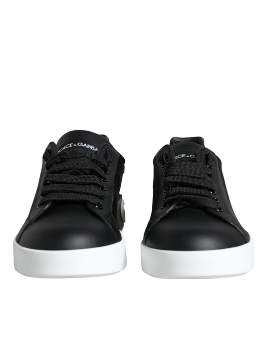 Dolce & Gabbana Black Calf Leather Portofino Sneakers Shoes