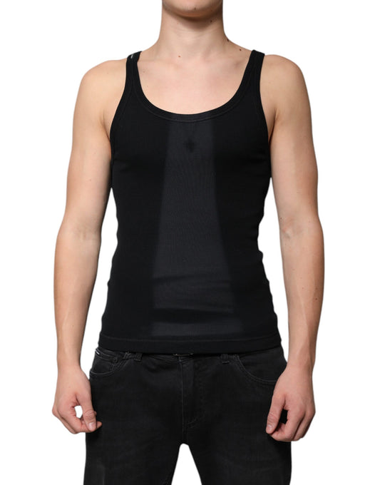 Dolce & Gabbana Black Cotton Sleeveless Round Neck Tank T-shirt