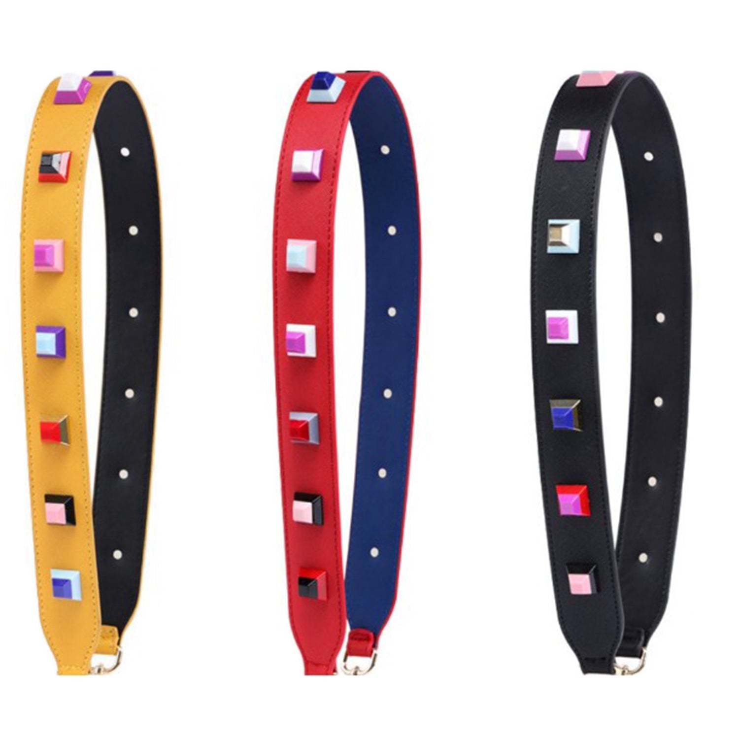 • Colorful Studded Wide Leather Bag Strap – Adjustable Designer Shoulder Strap