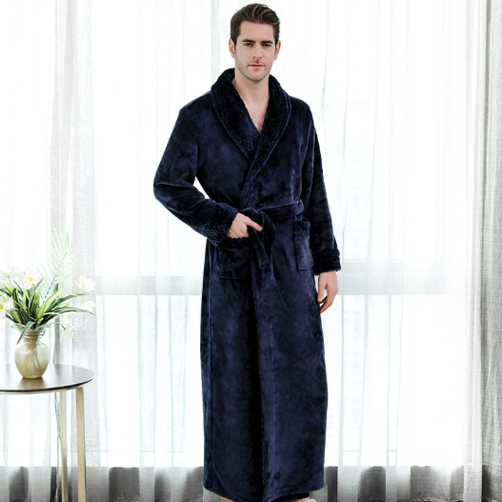 • Men’s Soft Plush Bathrobe – Long Robe with Belt & Pockets
