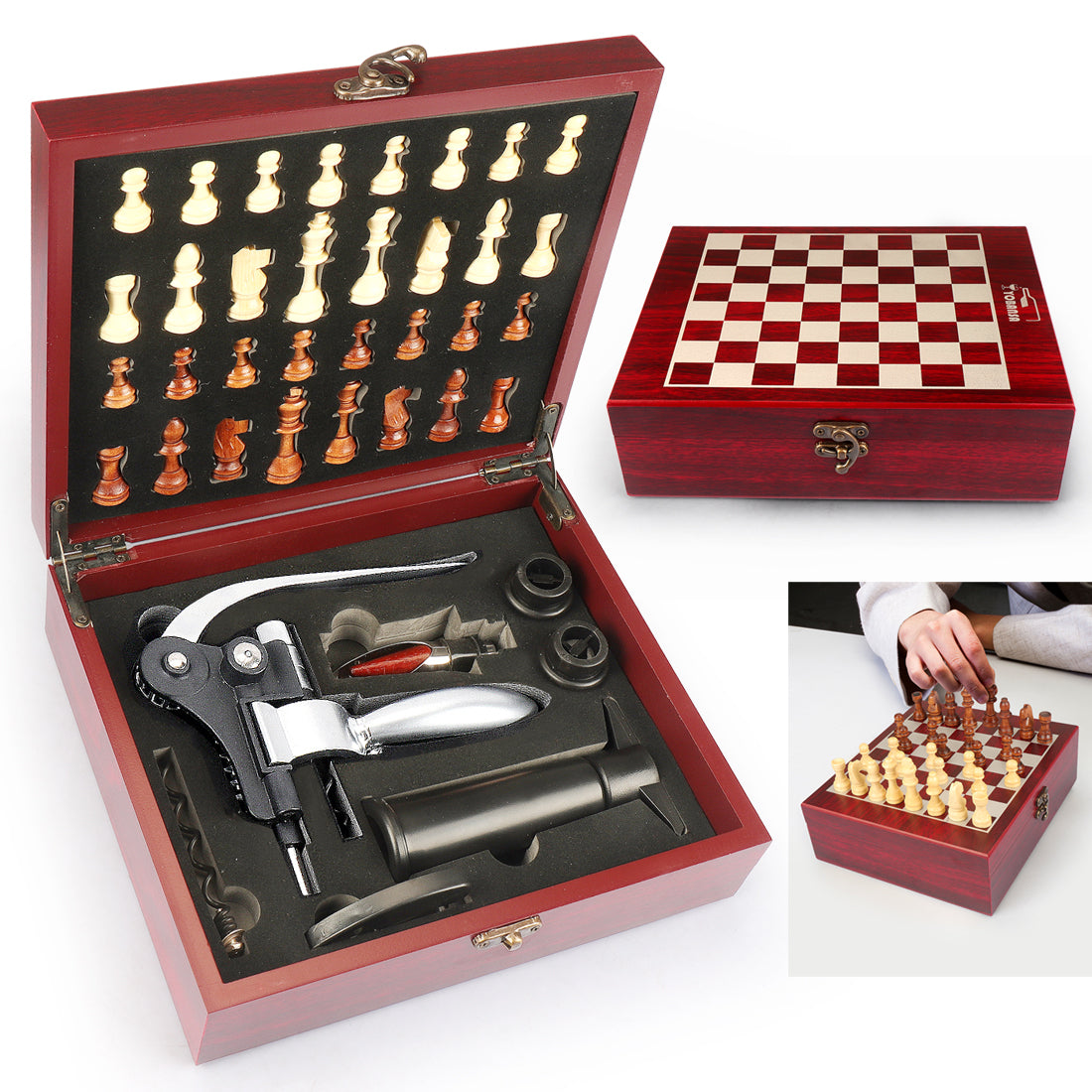 • Accessories 9-Piece Wine Opener Gift Set with Wooden Chess Box – Luxury Wine Accessories Kit