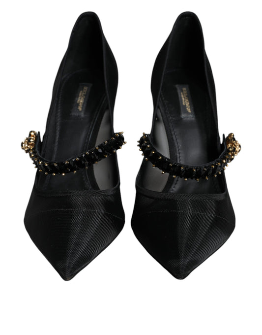 Dolce & Gabbana Black Mesh Mary Jane Crystal Heel Pumps Shoes