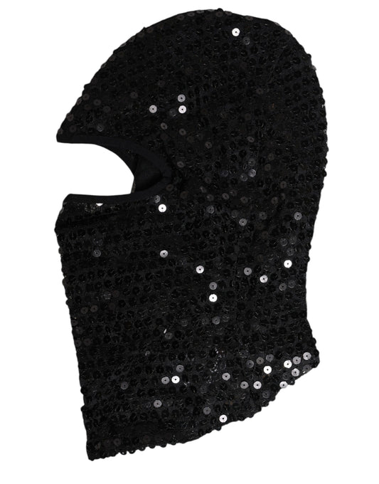 Dolce & Gabbana Black Sequined Nylon Ski Mask Balaclava Hat