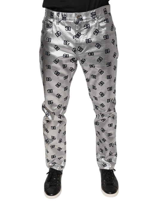 Dolce & Gabbana Silver DG Monogram Skinny Men Denim Jeans