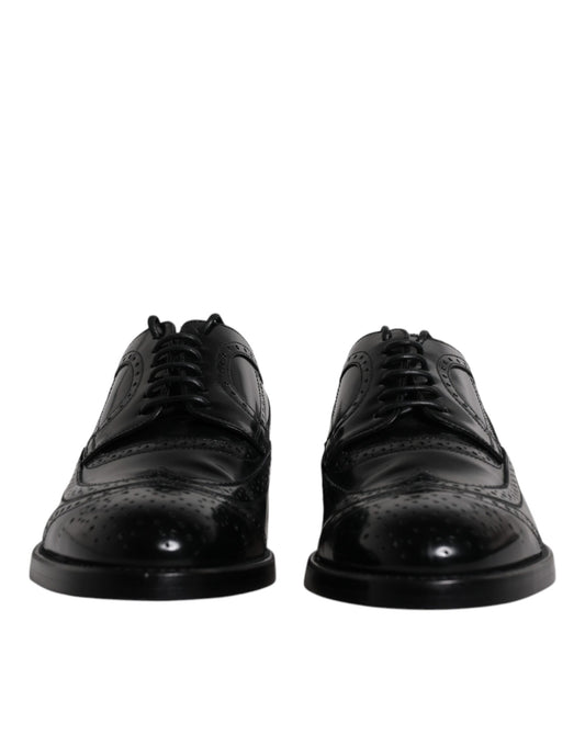 Dolce & Gabbana Black Leather Derby Wingtip Formal Shoes