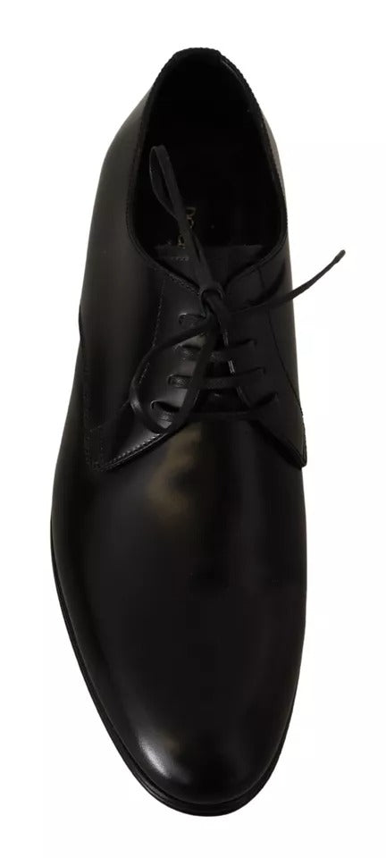 Dolce & Gabbana Black Leather Lace Up Men Derby Formal Shoes