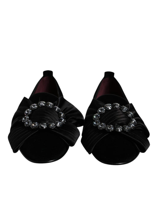 Dolce & Gabbana Black Crystal Flats Men Loafers Dress Shoes
