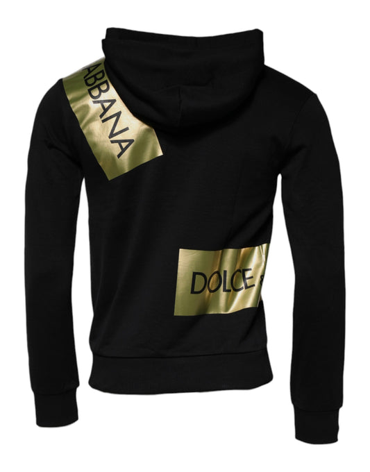 Dolce & Gabbana Black Gold Hooded Cotton Pullover Sweater
