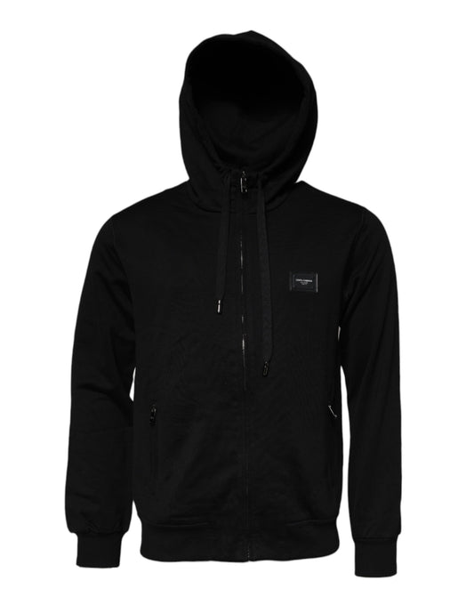 Dolce & Gabbana Black Logo Plaque Hooded Men Full Zip Sweater