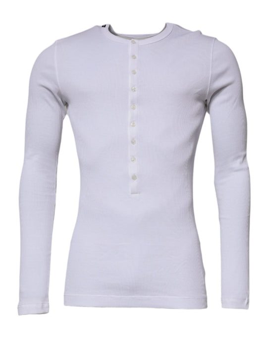 Dolce & Gabbana White Cotton Buttoned Men Pullover Sweater