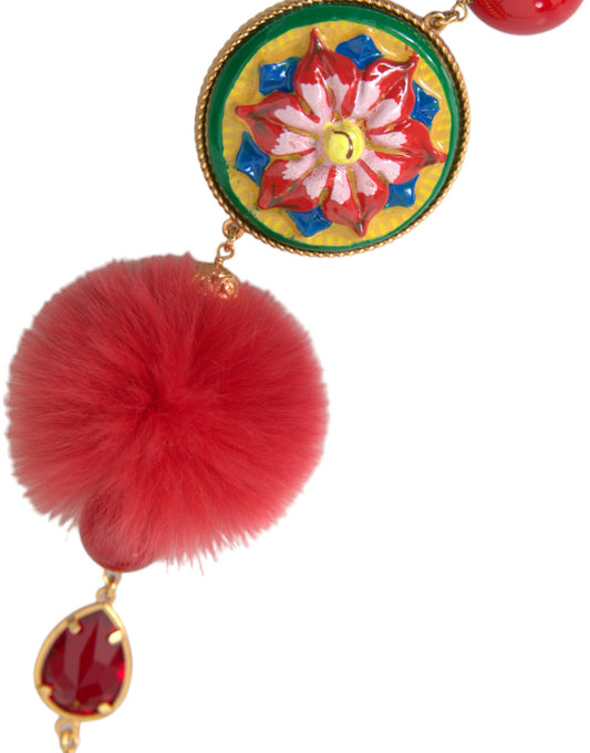 Dolce & Gabbana Gold Brass Red Fur Crystal Waist Torero Waist Belt