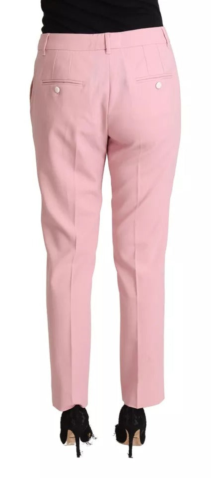 Dolce & Gabbana Pink Wool Mid Waist Tapered Pants