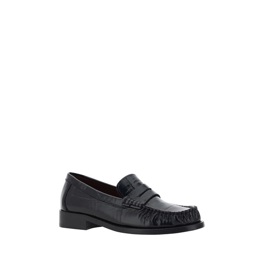 Peserico Black Leather Fur Perforated Slip On Flats Shoes