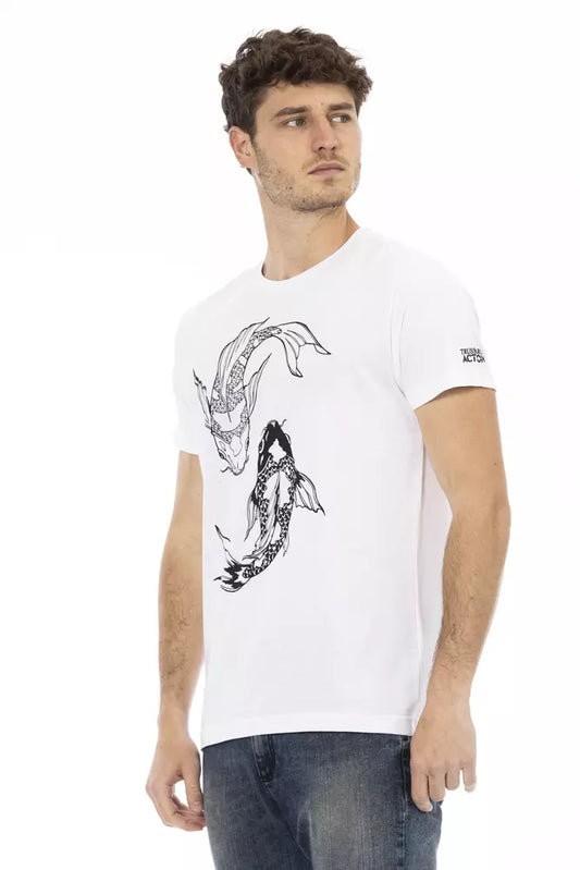 Trussardi Action Sleek White Cotton Blend Tee with Graphic Front