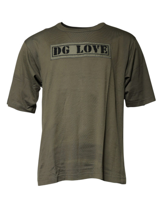 Dolce & Gabbana Army Green DG Love Cotton Crew Neck T-shirt