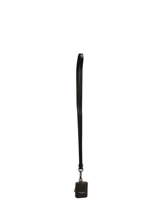 Dolce & Gabbana Black Leather Logo Silver Metal Strap Airpods Case