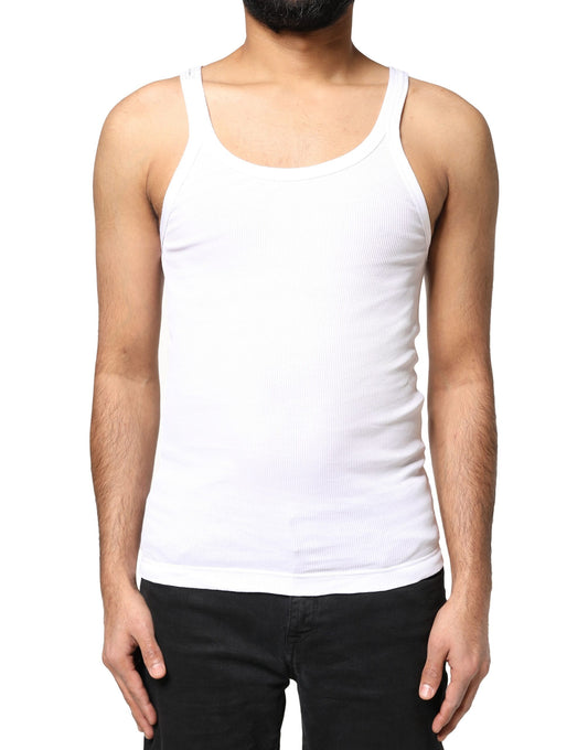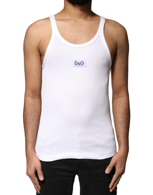 Dolce & Gabbana White Cotton DG Sleeveless Men Tank T-shirt