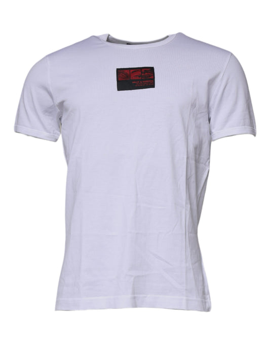 Dolce & Gabbana White Graphic Cotton Short Sleeves Men T-shirt