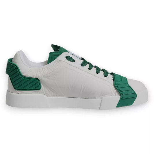 Dolce & Gabbana White Green Leather Logo Low Top Sneakers Shoes
