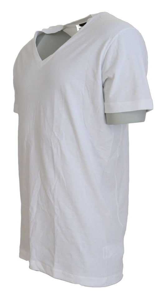 Dsquared² White Cotton Linen Short Sleeves V-neck T-shirt