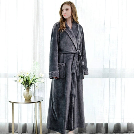 Fluffy Thick Microfibre Flannel Bathrobe Velvet Sleep Shawl Collar Bathrobe