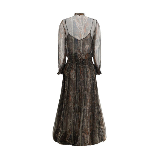 Dolce & Gabbana Brown Silk Sleeveless Shift Maxi Dress