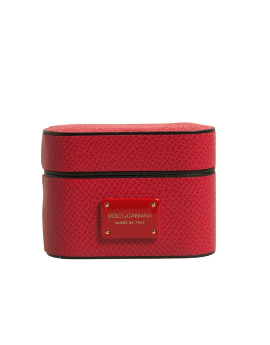 Dolce & Gabbana Red Leather Metal Logo Plaque Holder Airpods Case