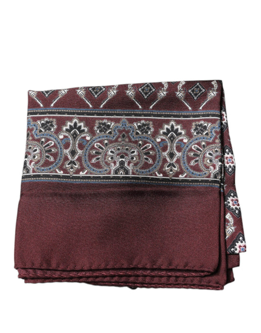 Dolce & Gabbana Maroon Fantasy Silk Square Handkerchief Scarf