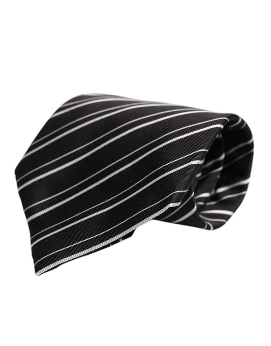 Dolce & Gabbana Black White Stripes Silk Adjustable Necktie Tie