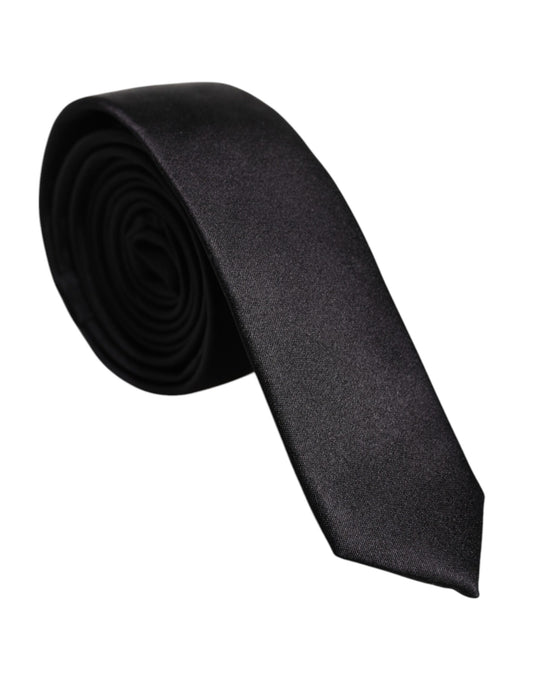 Dolce & Gabbana Black Solid Silk Adjustable Necktie Tie