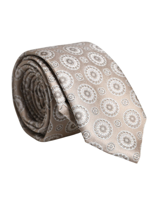 Dolce & Gabbana Beige Graphic Print Silk Adjustable Necktie Tie