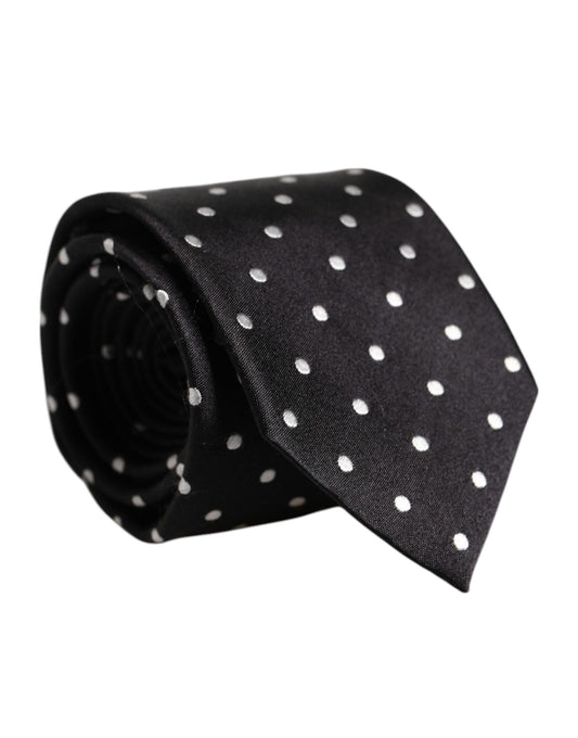 Dolce & Gabbana Black Polka Dots Silk Adjustable Necktie Tie