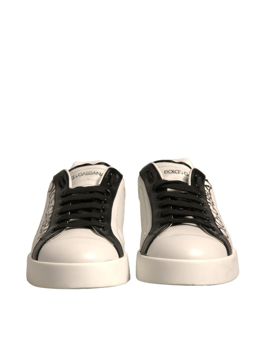 Dolce & Gabbana White Black Logo Portofino Sneakers Shoes