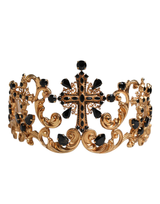 Dolce & Gabbana Gold Tone Brass Cross Crystal Embellished Crown Tiara