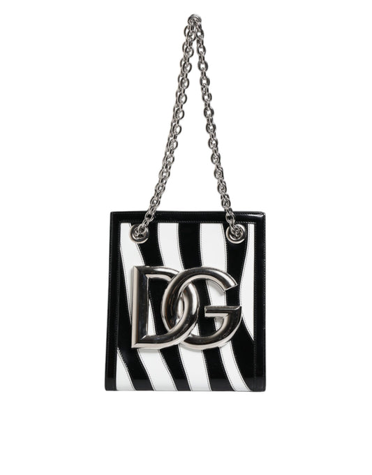 Dolce & Gabbana Black White Zebra Patchwork Logo Plaque Shoulder Bag