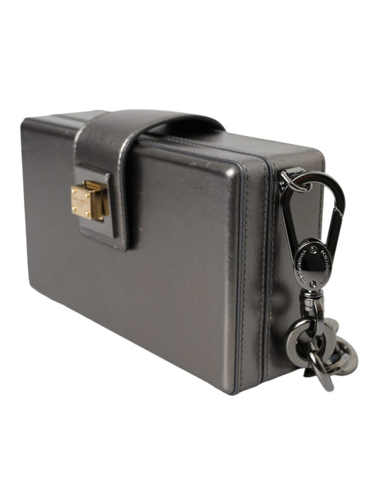 Dolce & Gabbana Metallic Gray Calfskin Leather DG BOX Shoulder Bag