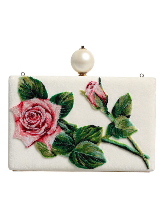 Dolce & Gabbana White Rose Floral Faux Pearl Microbag Crossbody Bag