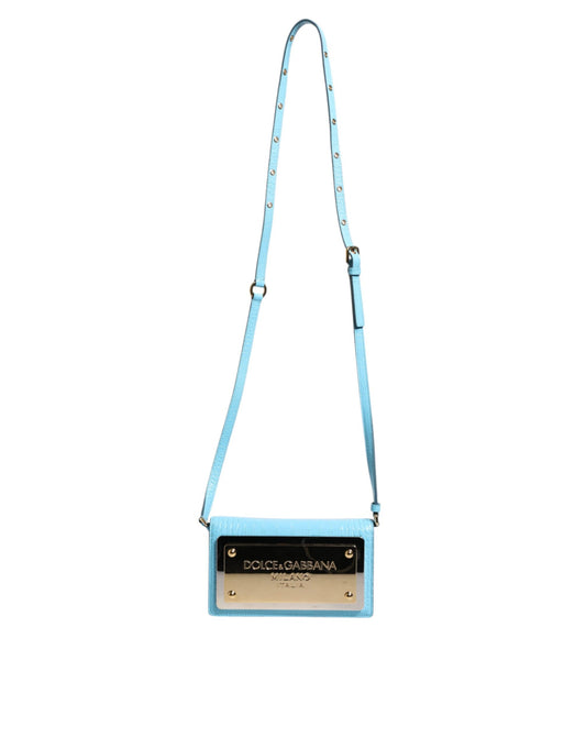 Dolce & Gabbana Blue Branded Maxi Plate Leather Crossbody Phone Bag