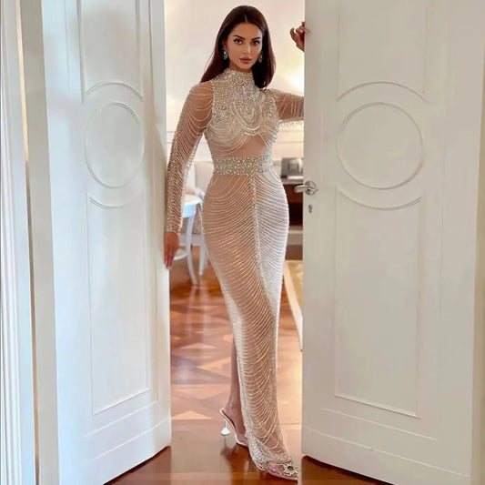 Sharon Said Luxury Crystal Tassel Dubai Evening Dresses for Women Wedding Party Arabic Mermaid Long African Prom Dress RM152