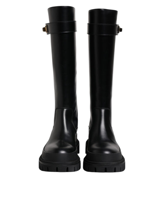 Dolce & Gabbana Black DG Logo Calf Leather High Boots Shoes
