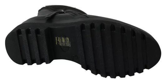 Dolce & Gabbana Black White Padded Mid Calf Lace Up Boots Shoes