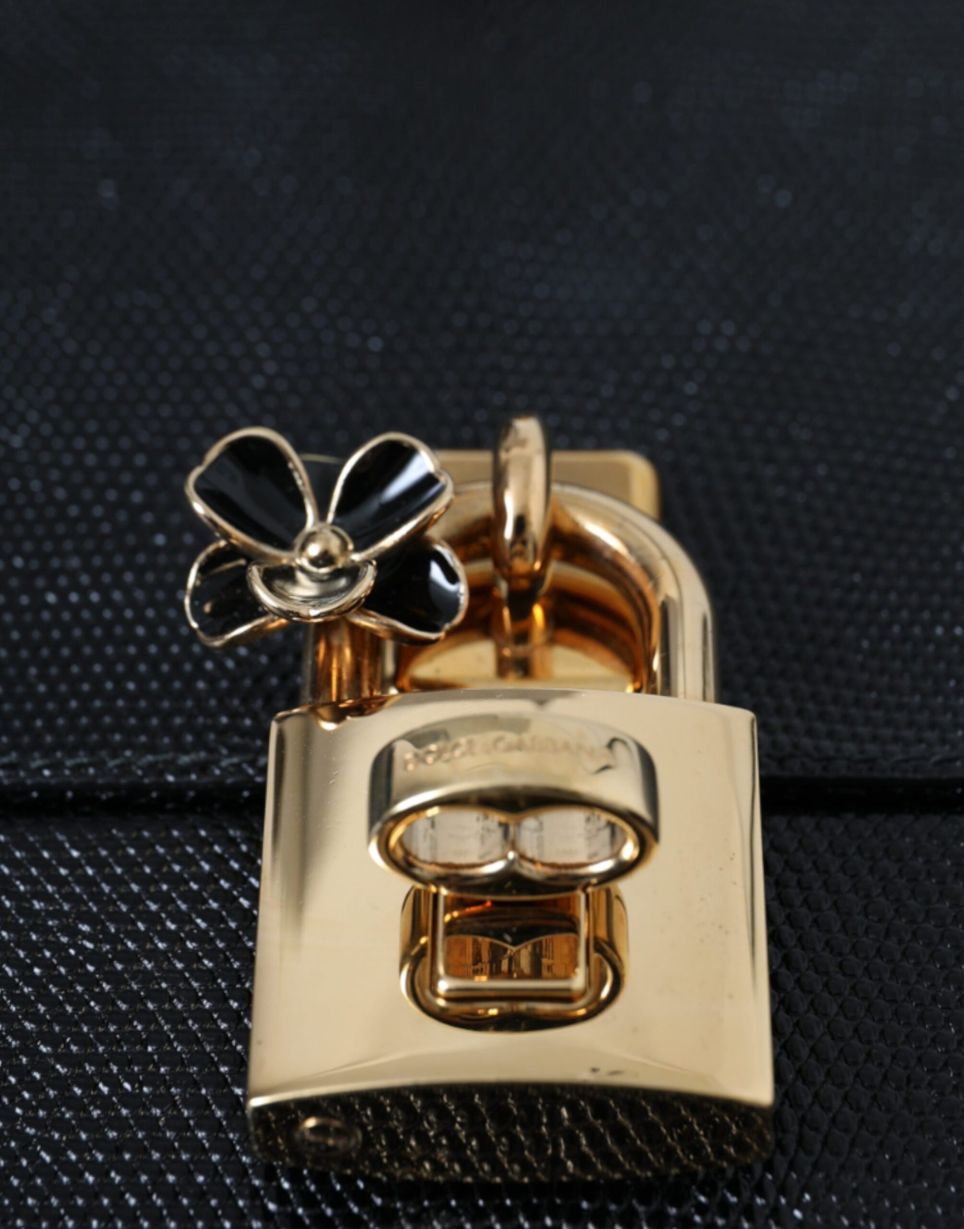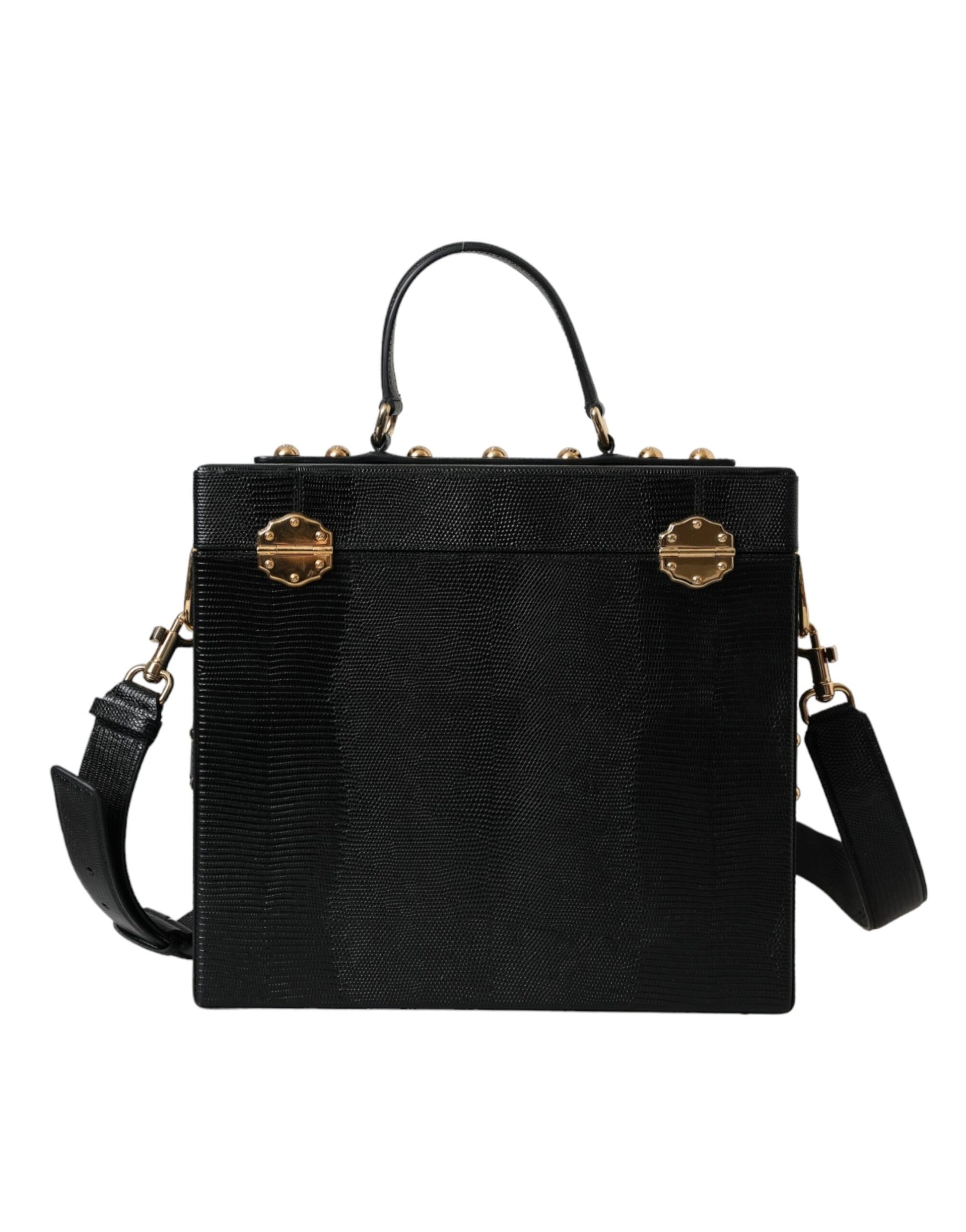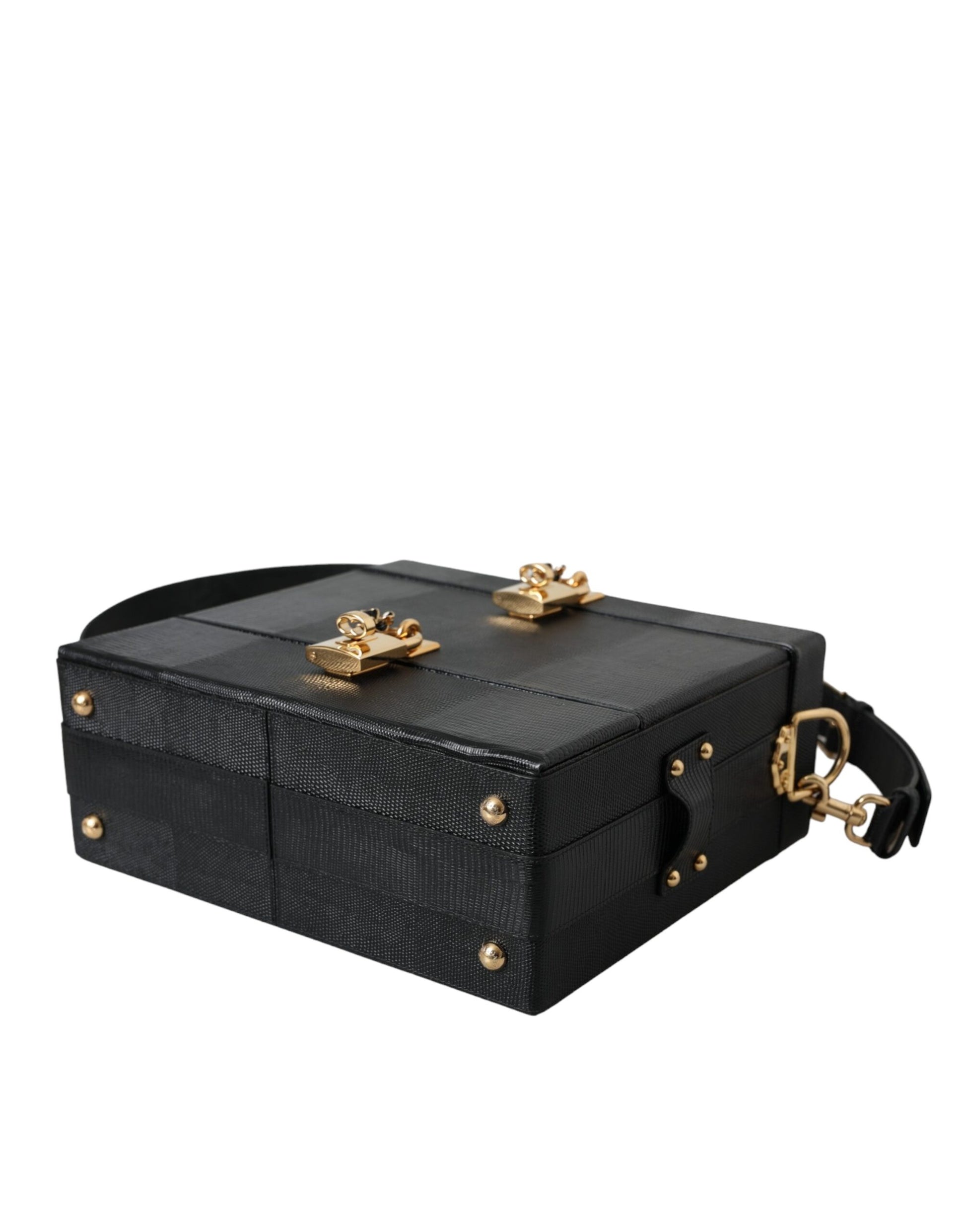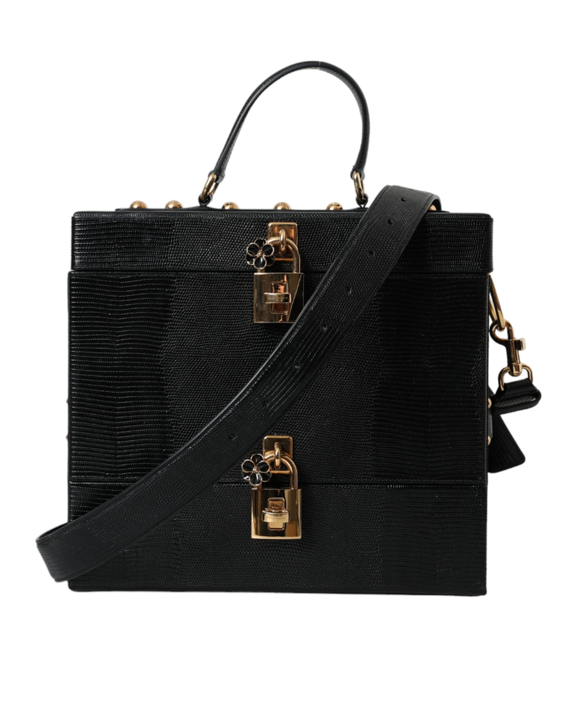 Absolutely stunning, 100% Authentic, brand new with tags Dolce & Gabbana lizard textured double box shoulder bag features a two compartments with two decorative padlocks and a large mirror.