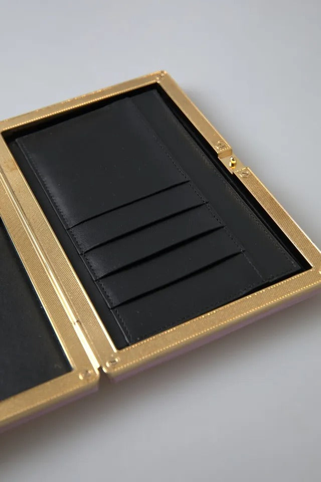 Dolce & Gabbana Pink Silk Gold Frame Clutch Evening Party Purse Bag