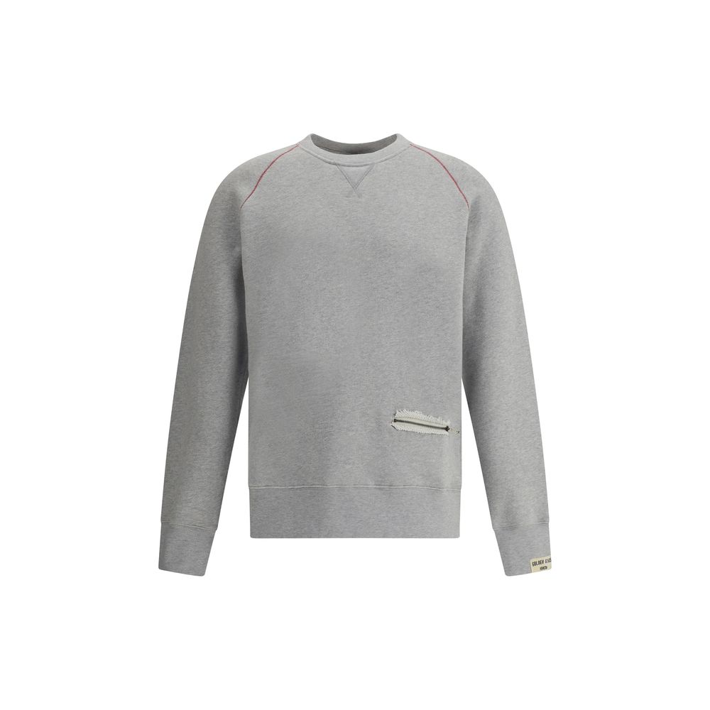 Golden Goose’s cotton Sweatshirt combines comfort and refined details in a distinctively styled design. Made of pure cotton, it features a ribbed crew neck for strength and stretch. The raglan sleeves with exposed seams add a sporty, dynamic touch, while the zippered welt pocket on the front introduces a functional, modern element. Ribbed cuffs are embellished with the iconic applied monogram patch, a signature detail of the brand’s aesthetic.