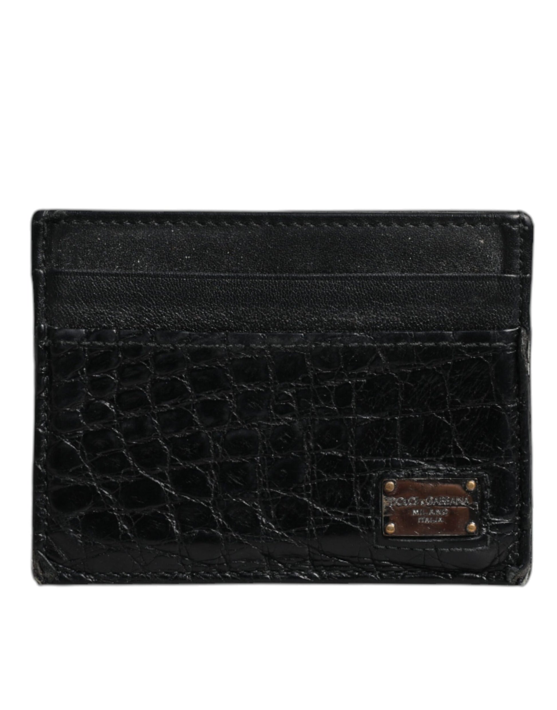 Dolce & Gabbana Black Leather Card Holder Case DG Logo Plaque Wallet