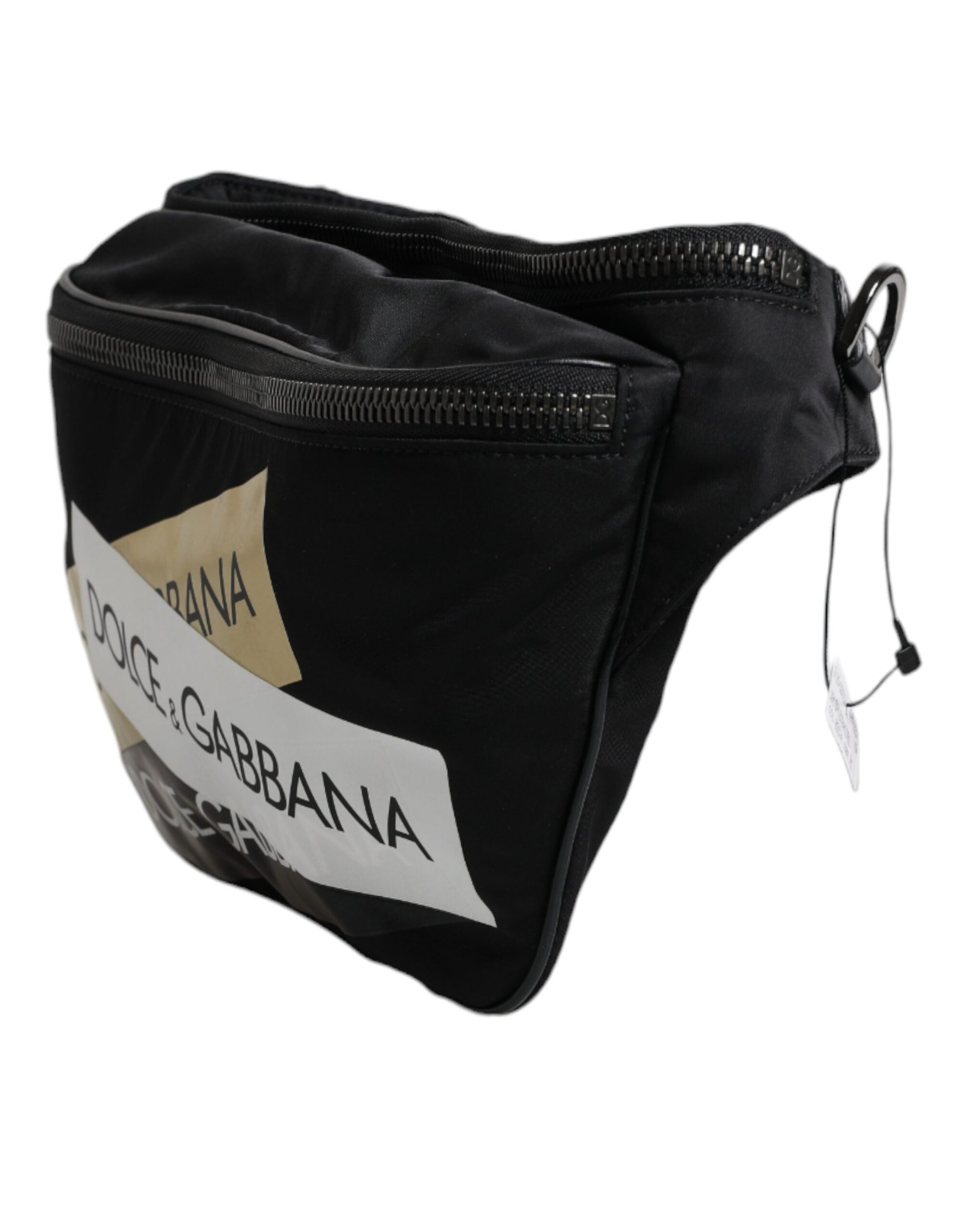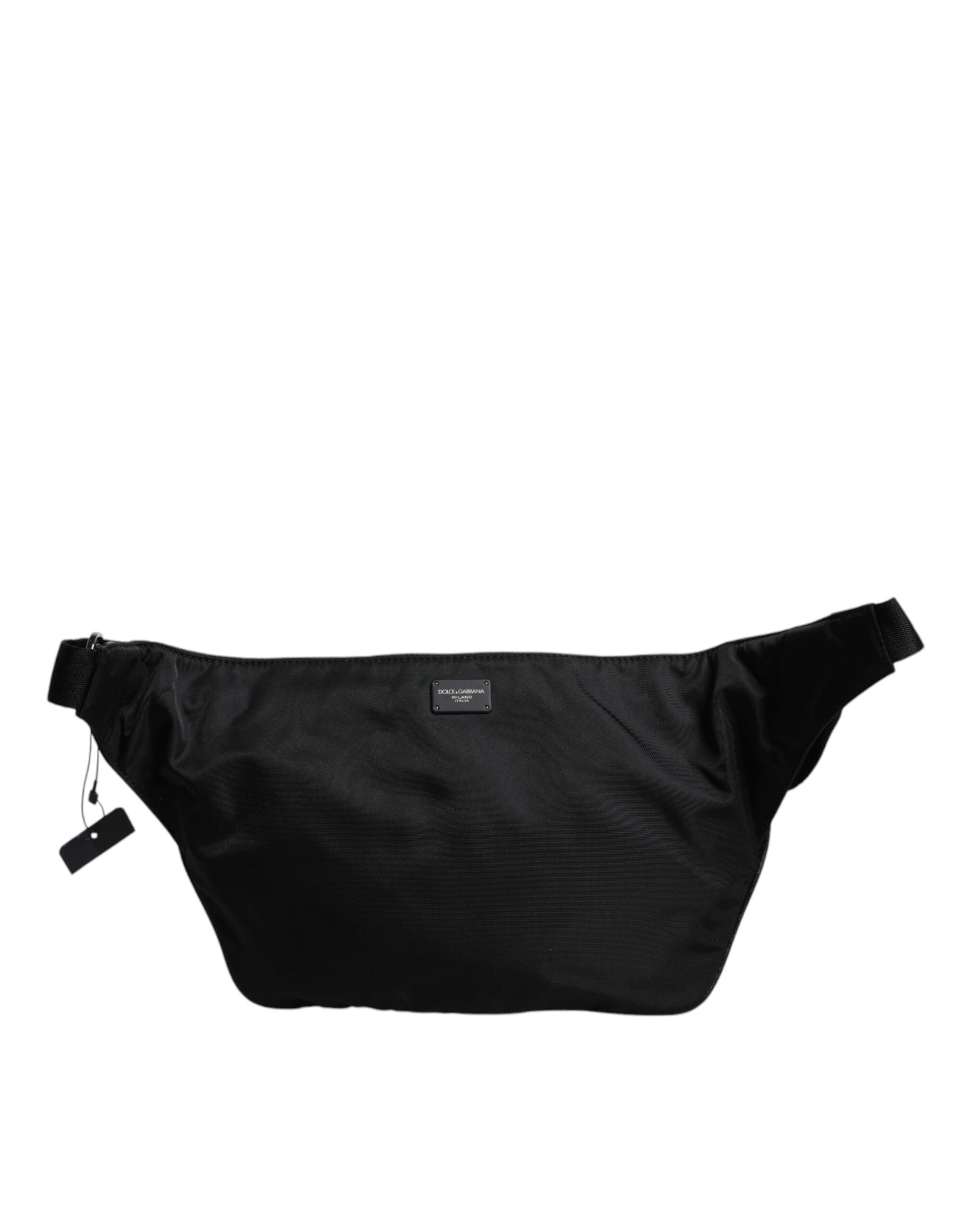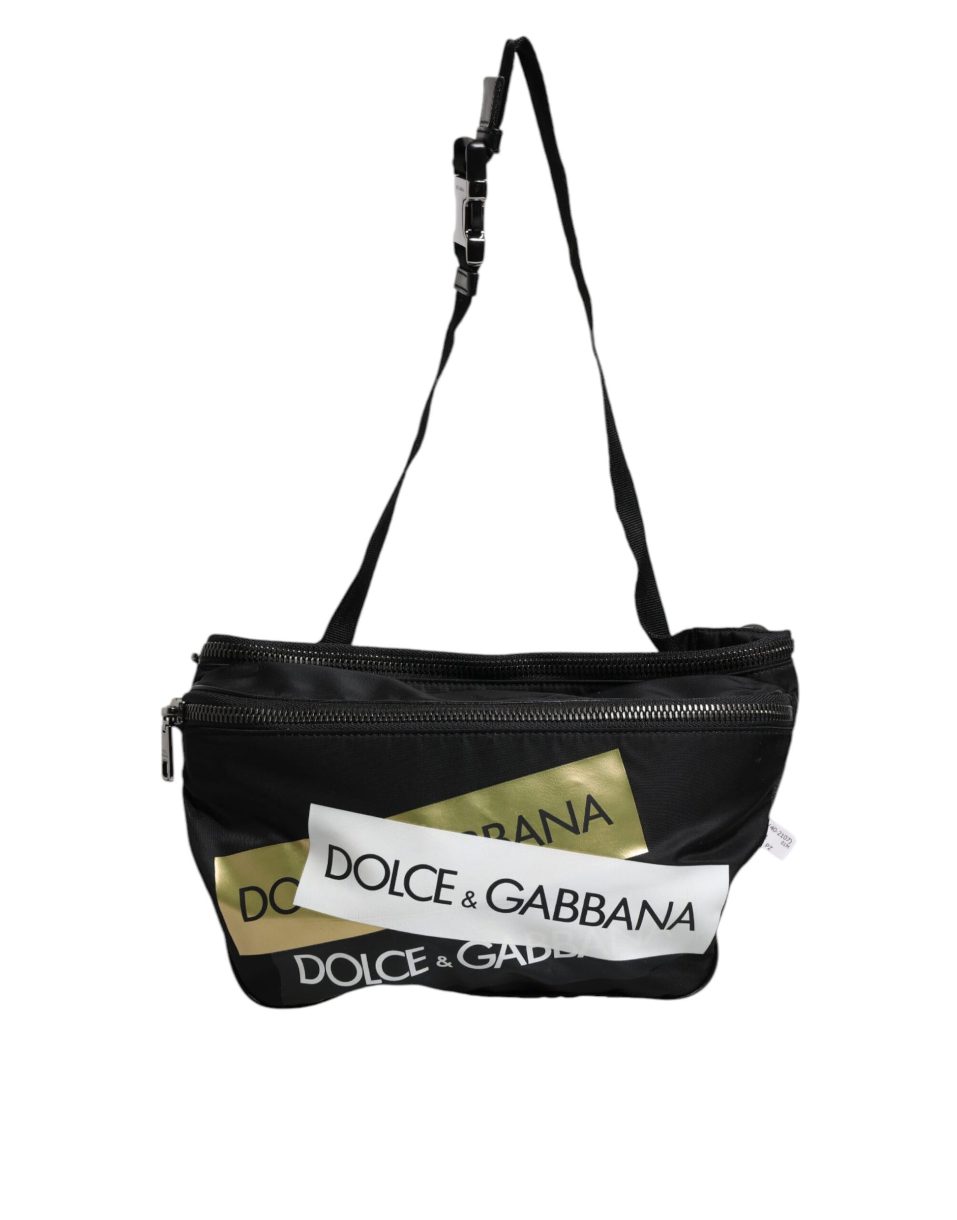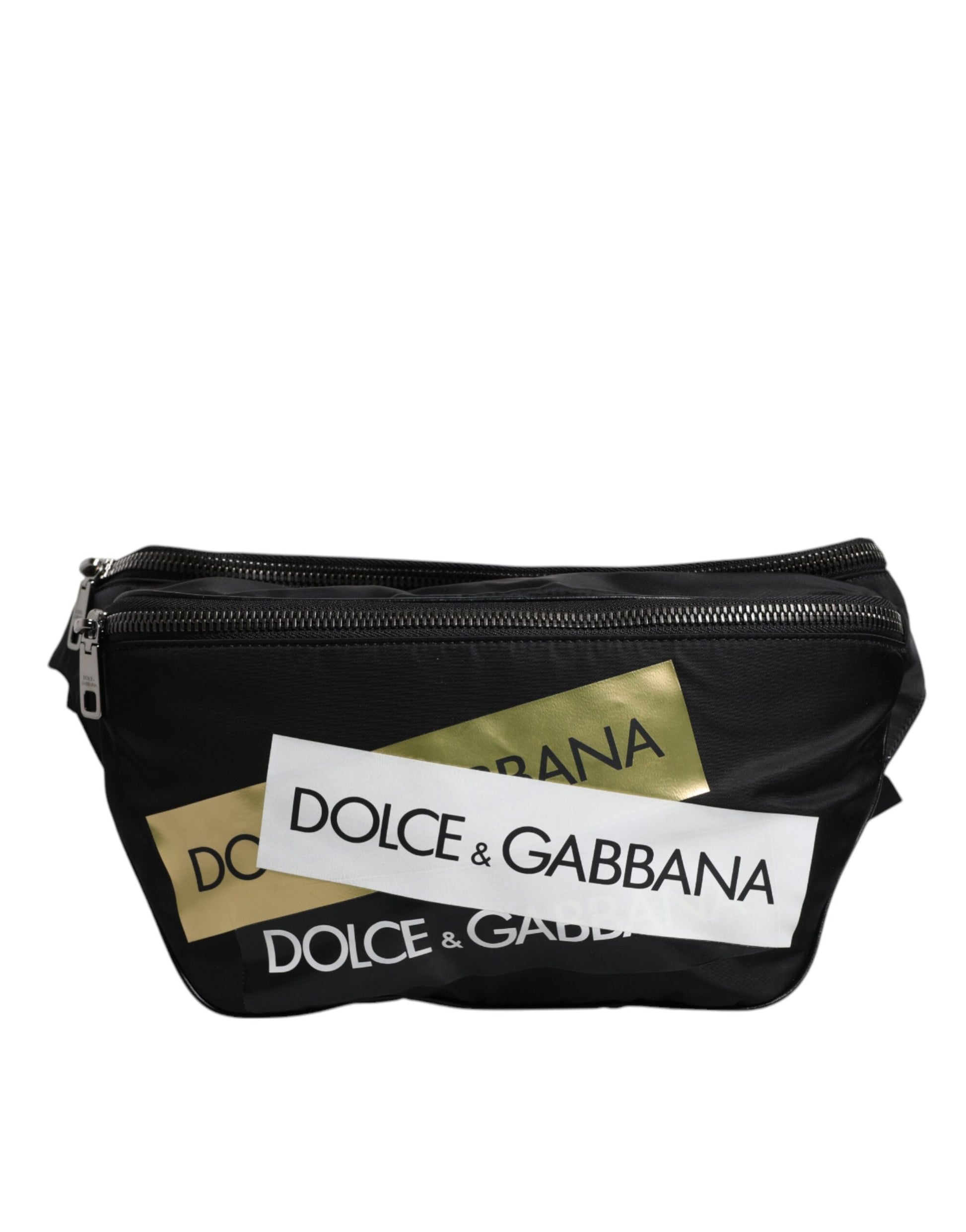 Dolce & Gabbana Black Nylon Logo Tape Belt Waist Fanny Pack Bag