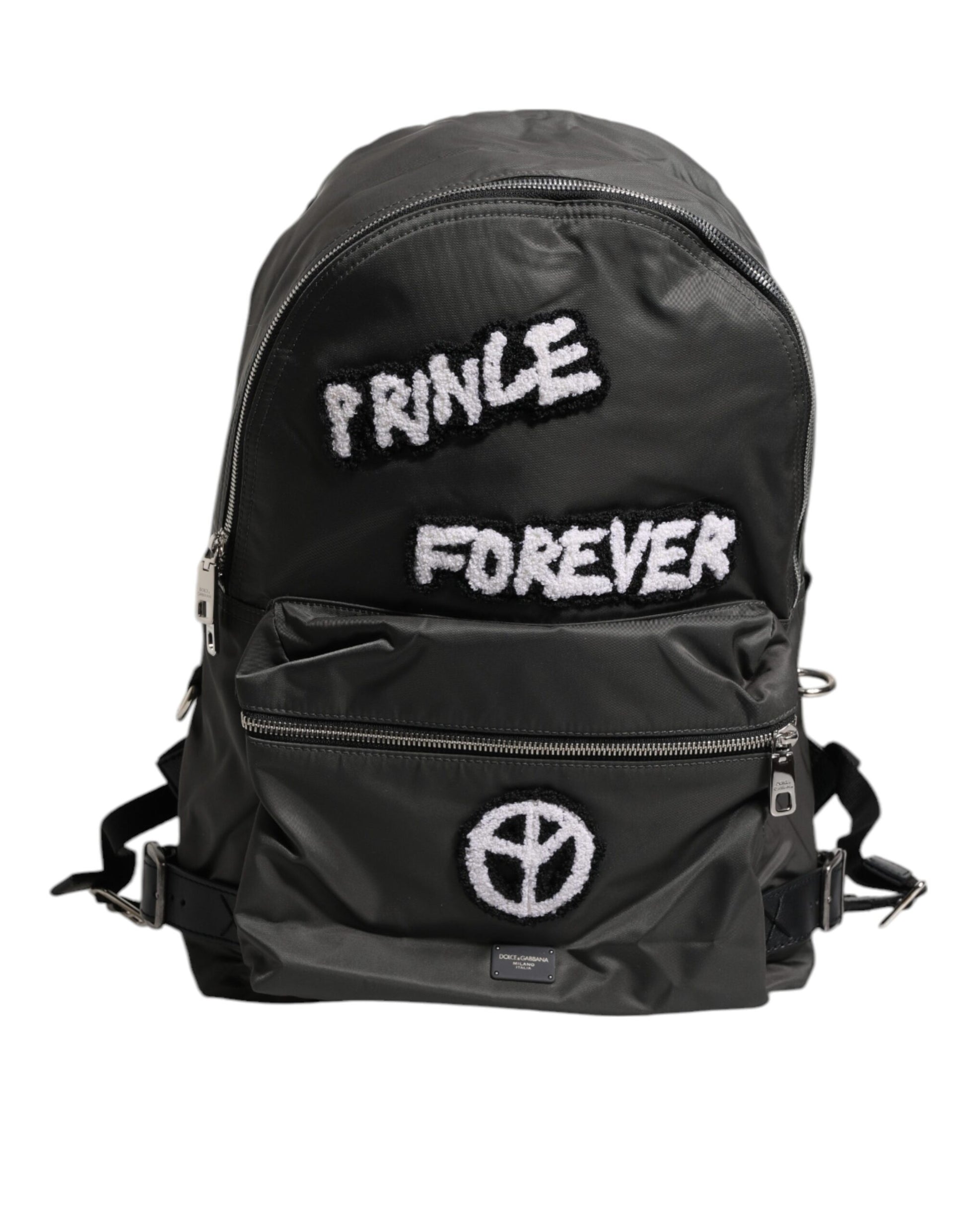 Gorgeous brand new, 100% Authentic Dolce & Gabbana backpack is made in Italy and features a round top handle, adjustable shoulder straps, a top zip fastening, side zip details, silver-tone hardware, an internal slip pocket, an internal logo patch and fun prince and logo patches to the front.
