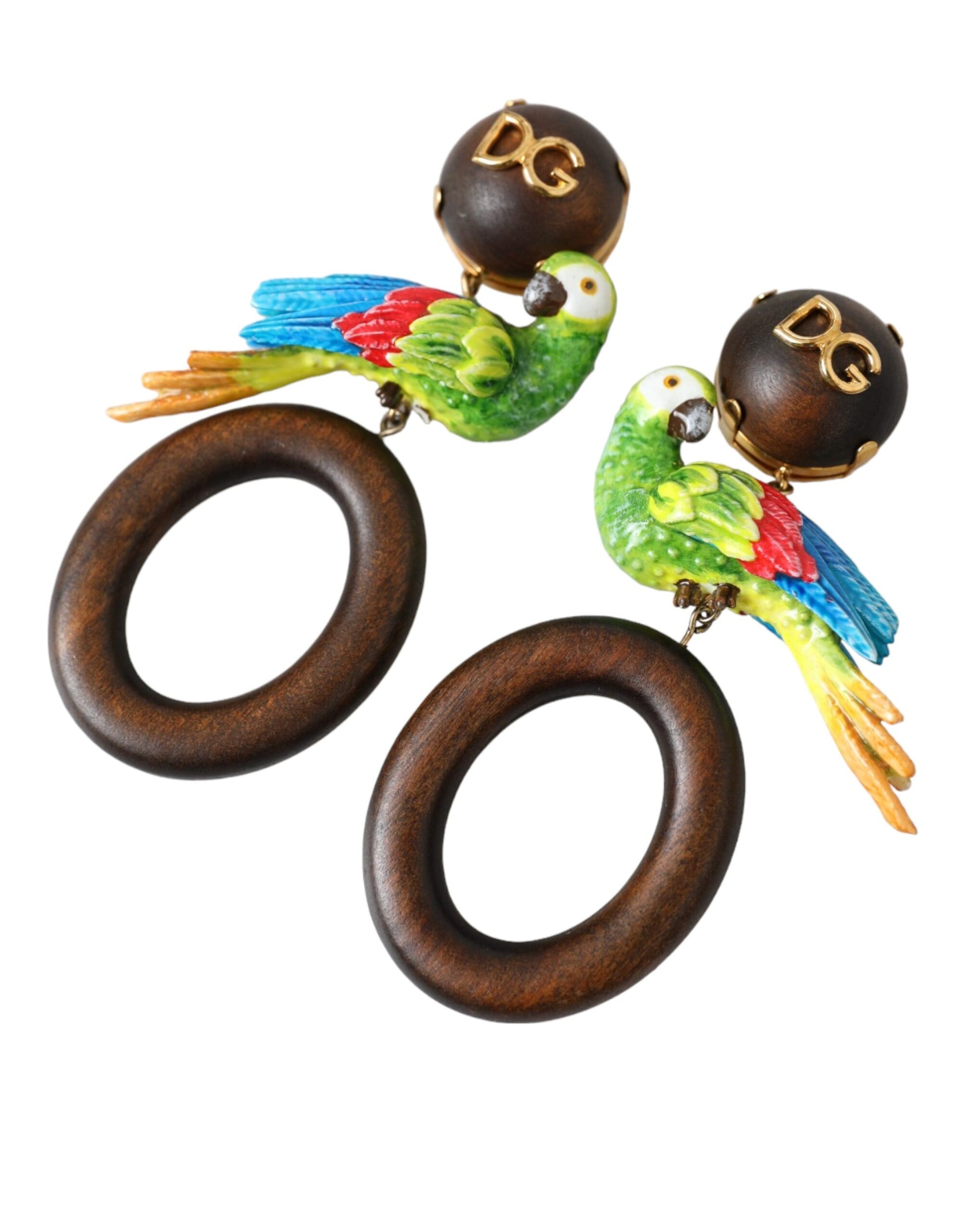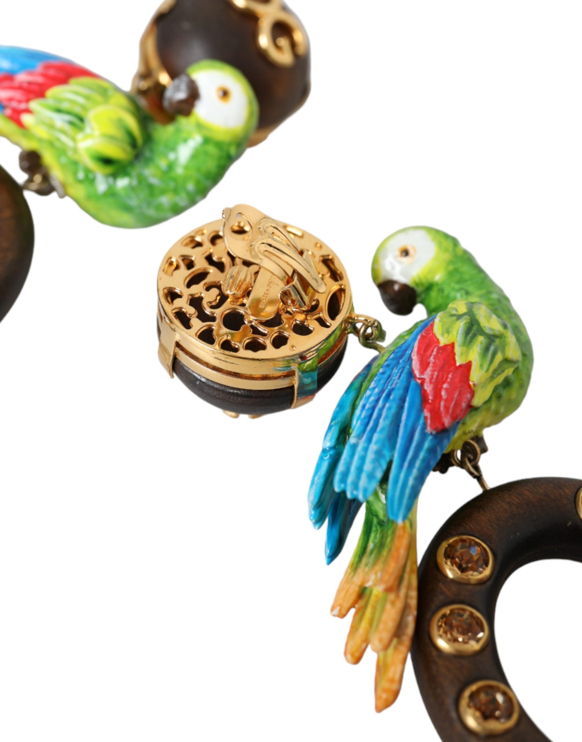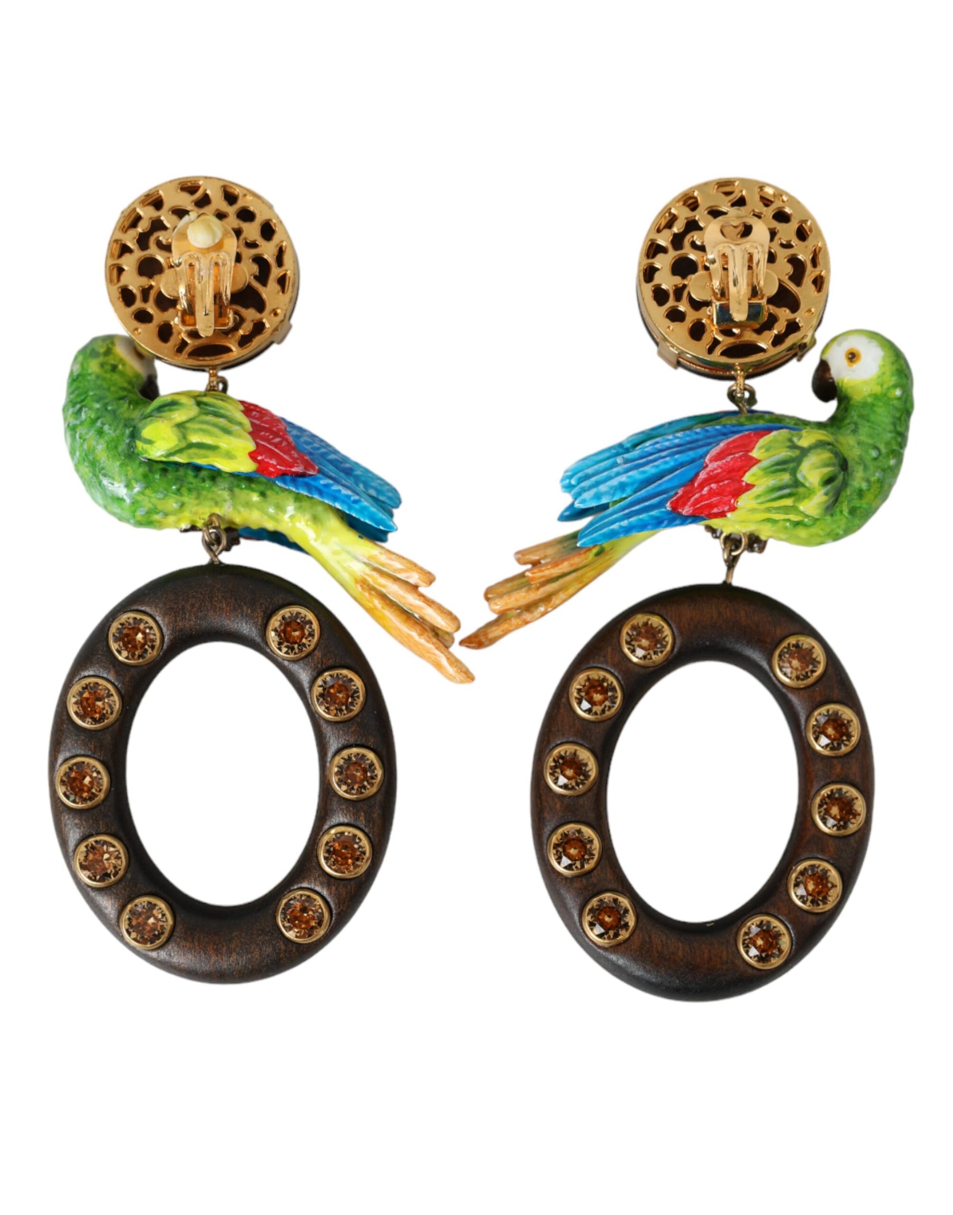 Dolce & Gabbana Multicolor Parrot Wood Brass Crystal Embellished Earring