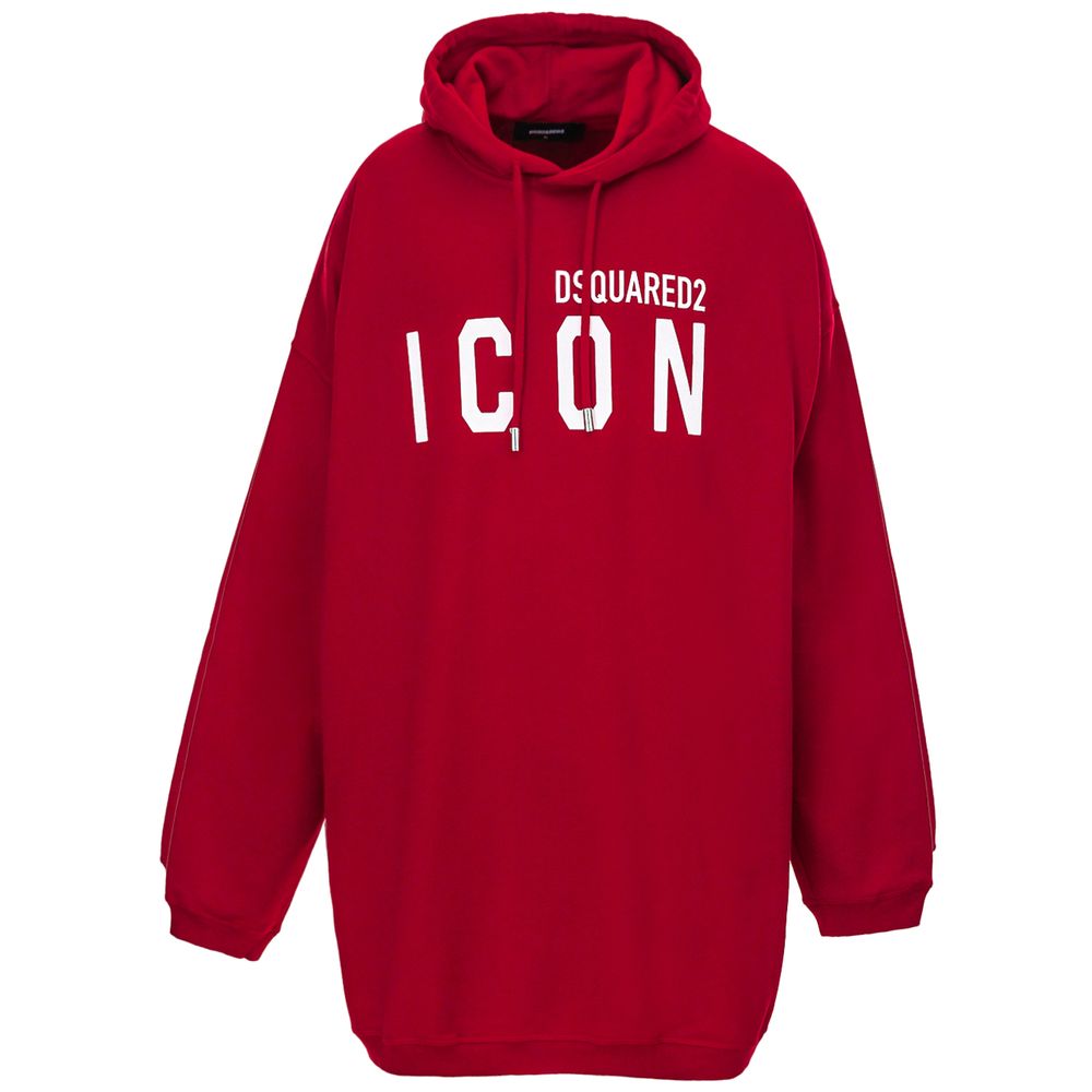 Dsquared2 Over Fit Be Icon Sweatshirt. In red with plush interior, adjustable hood, two side welt pockets. On the front logo printed in white ‘Dsquared2 Icon’. Consider the over fit of this product when purchasing. Composition: 100% Cotton-Sku inner:24GIU71