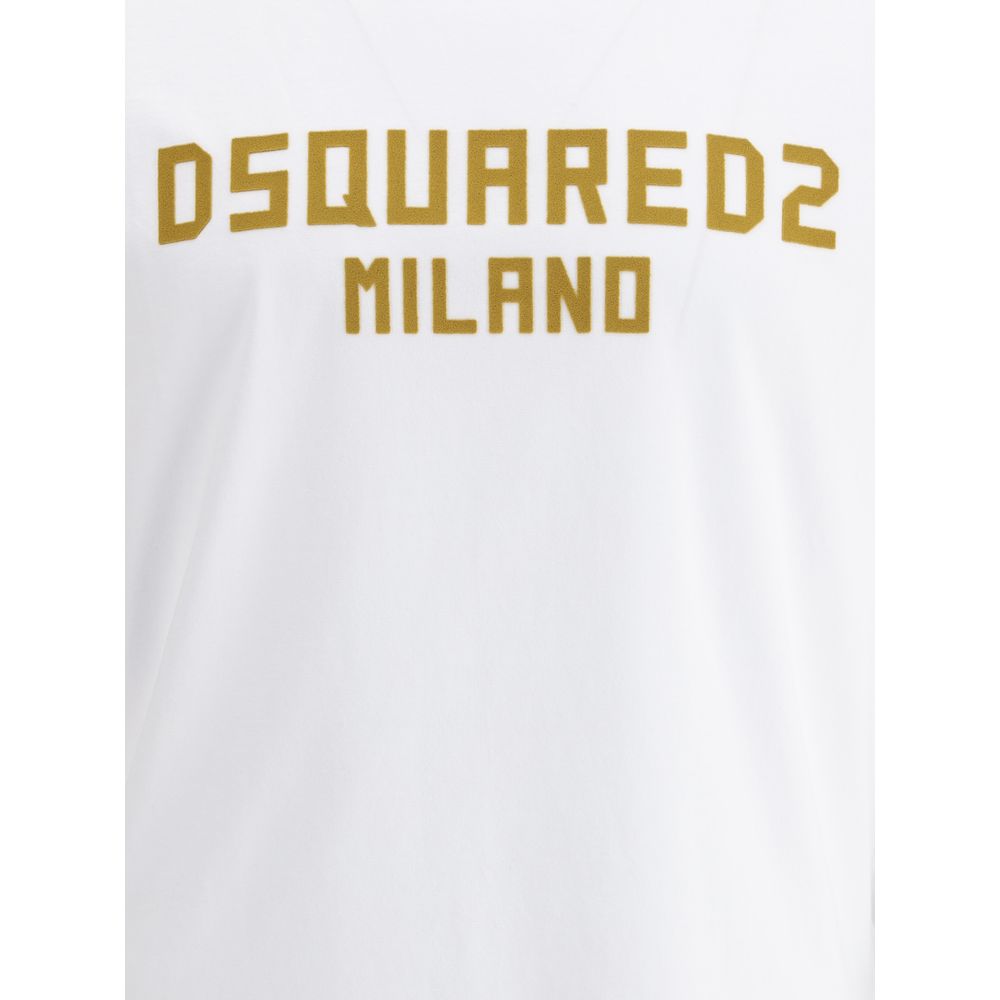 Cotton T-Shirt by Dsquared2, ribbed crew neck, contrasting iconic brand monogram on front, monochrome pattern, regular fit.